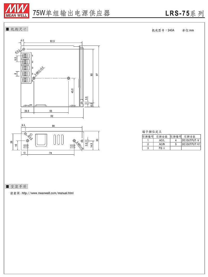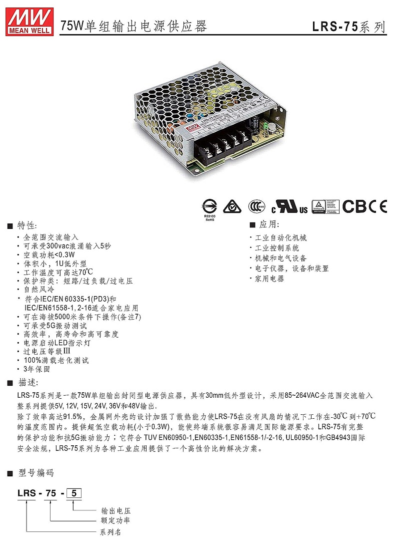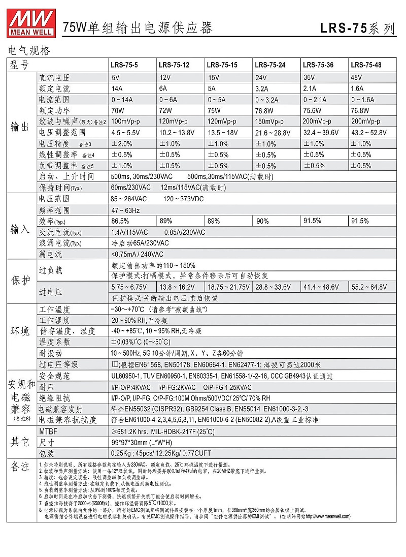 ******明緯電源LRS-75-24 75W直流24V開關(guān)電源 三年質(zhì)保