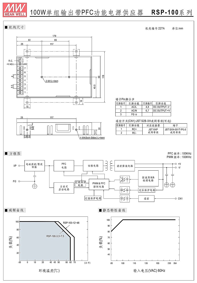 明緯******PFC電源 RSP-100-5 直流5V20A開關(guān)電源 3年質(zhì)保